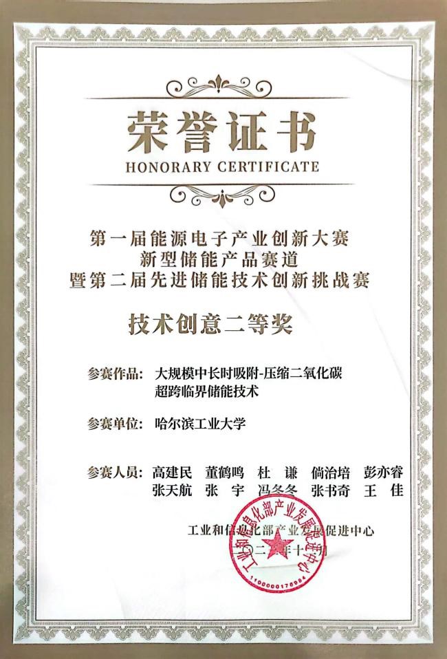 大赛共征集507项参数作品,经初赛评比共300项进入决赛。哈尔滨工业大学能源科学与工程学院项目“大规模中长时吸附-压缩二氧化碳超跨临界储能技术”在物理储能分组16项技术中进入前3名,获得创新创意类分赛道技术创意二等奖。